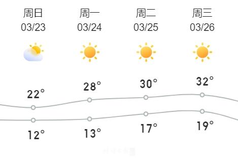 21日至26日,我省气温持续上升,仅23日就略有下降。26日,全省许多地区的最高气温可达31℃。受寒潮影响,27日至28日全省平均气温将下降10℃。~12℃。与此同时,全省北风增至44℃。~5级,9级以上阵风。