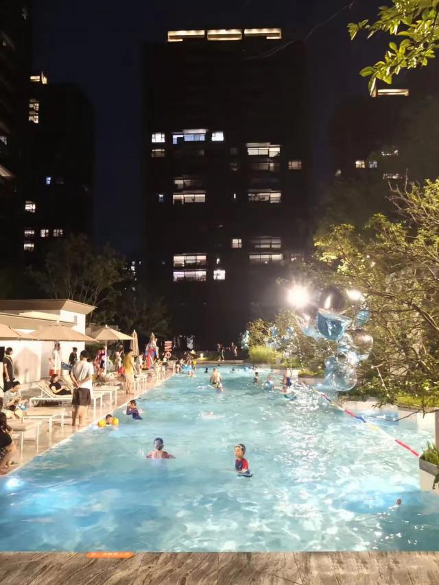 小一点的孩子需要玩耍的空间,然后把游泳池改成晚上可以享受亲子时光的区域。