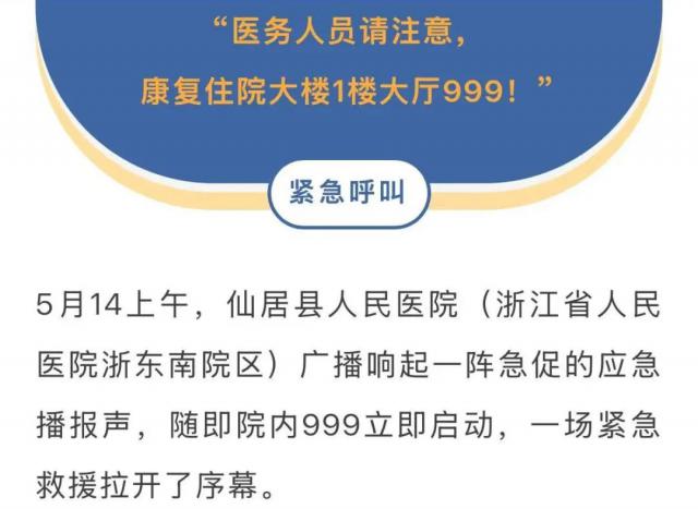 “仙居县人民医院”微信公众号表示, 999 "只要广播广播启动,医院就会启动医院突发事件医疗应急计划号" 999 ",在五分钟内,由医院多个科室成员组成的急救小组成员将到达现场抢救病人。