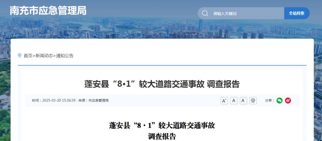 近日,四川南充市应急管理局发布了《蓬安县“8·1”大型公路交通事故调查报告》。