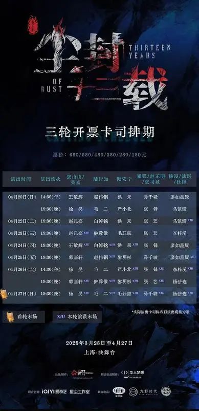 本来我以前想要《尘封十三年》什么时候有,结果今天不小心搜了一下上海最近的活动,竟然发现了!然而,从卡司的角度来看,音乐剧变成了张山山/吴嘉。从凶手的角度来看,也是一个很好的视角。后来卫峥嵘的角色消失了,看上去和陆行知合并成一个人,有些配角就是同一位演员。总而言之,与电视剧不同,演员更不同,就是要不同才好,所以还是可以期待的。