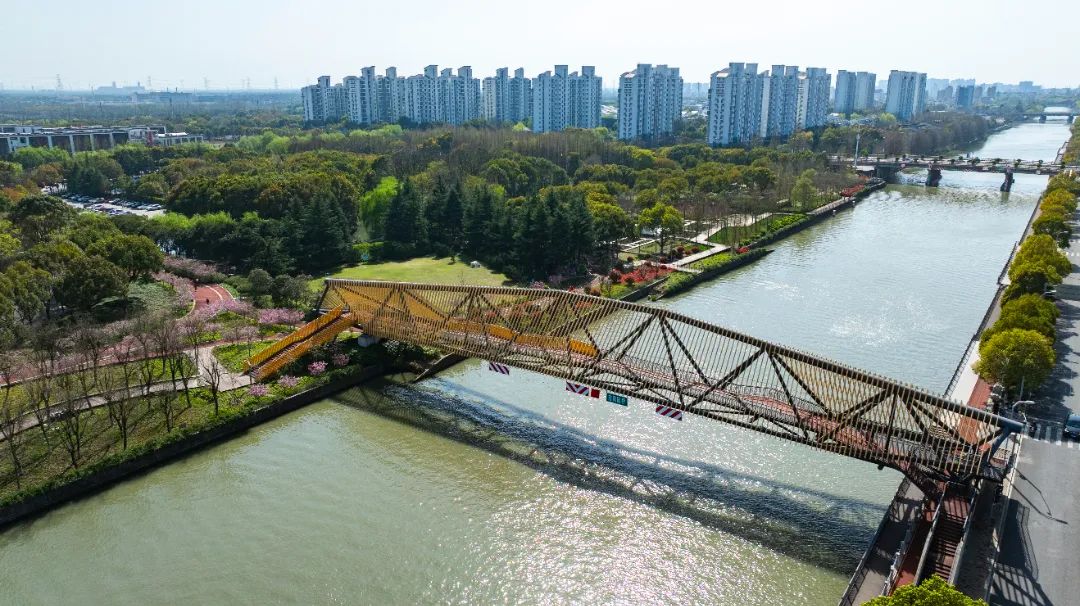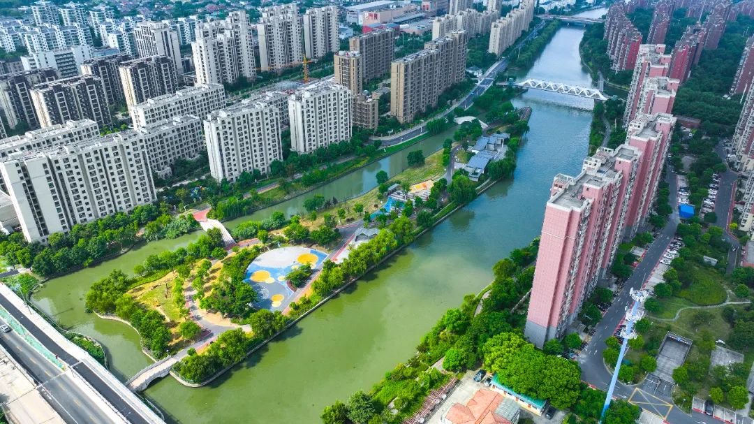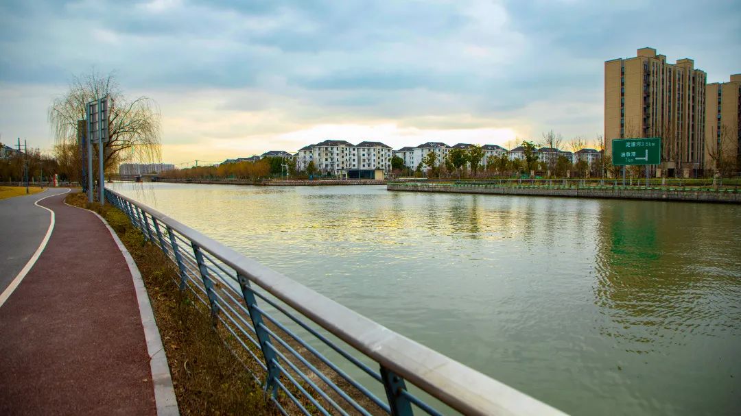 环顾四周,西大盈港就像一条银龙,穿梭于城市之间,河边也成了市民周围的康体活力绿廊。