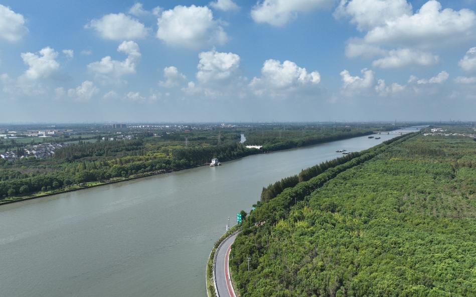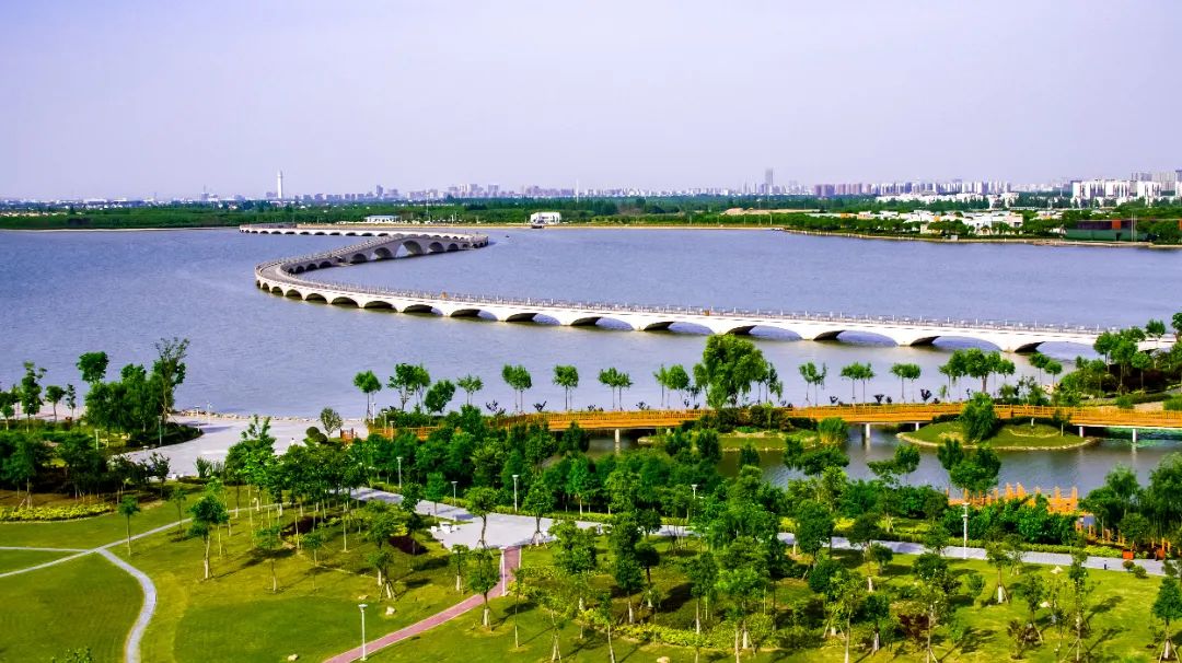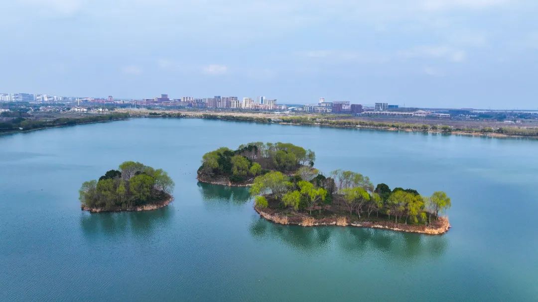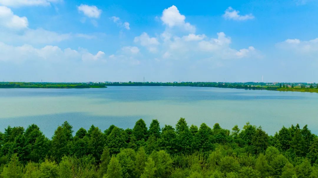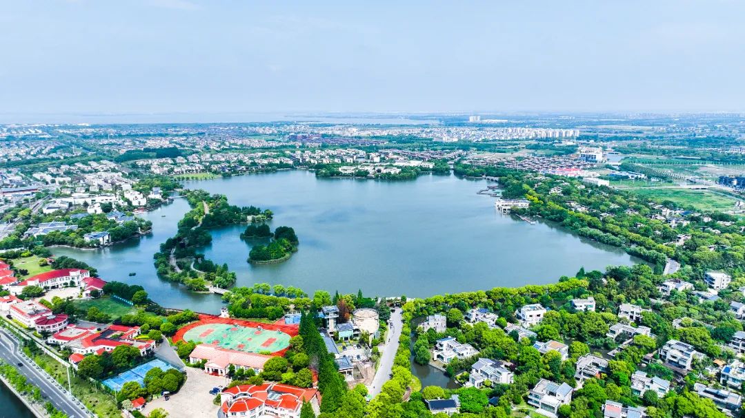 “蓝珠链”很有匠心,水系串联“七湖一河”(七湖:火泽荡、南白荡、西白荡、大漾、小漾、大莲湖、任屯湖;一河:北横港),像“大珠小珠落玉盘”一样点缀地面。