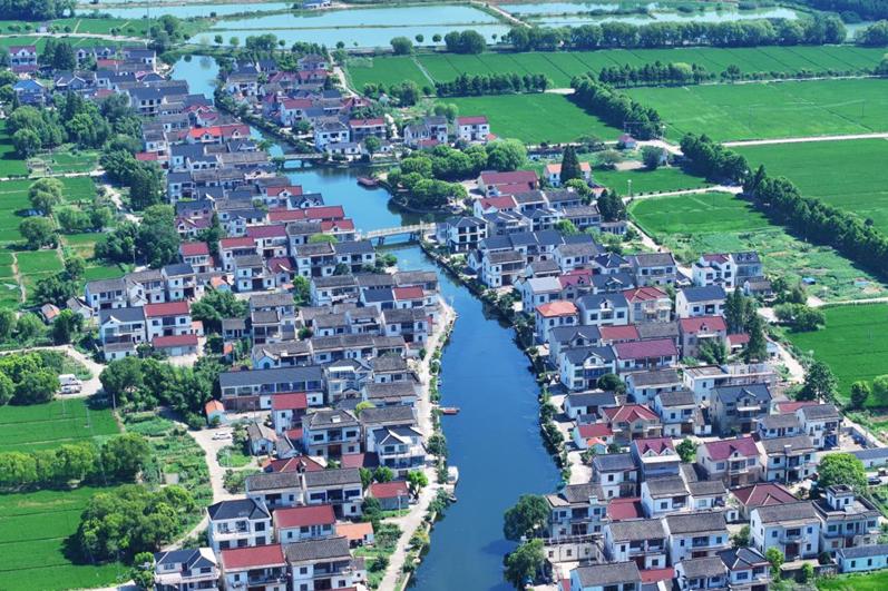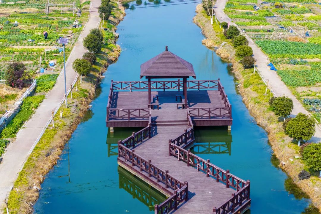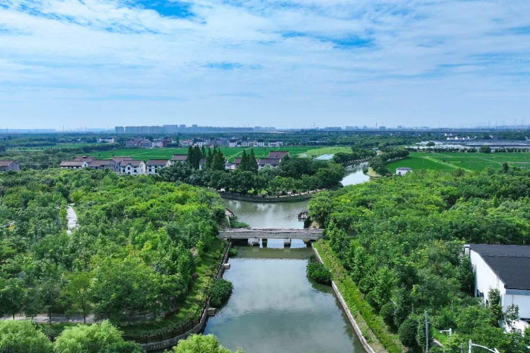 重固镇北部五村的建筑纵横,以水为墨,以绿色为笔,画出一幅生态宜居的美丽画卷。