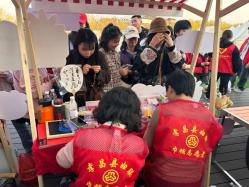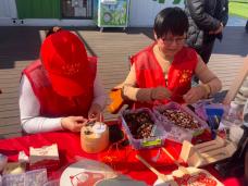 非物质文化体验馆充满文化气息。女志愿者和非遗传传承人严咏梅老师带着大家现场剪纸串珠。每个人都沉浸在非物质文化的魅力中,制作剪纸、字画扇、干花笔记等艺术品。