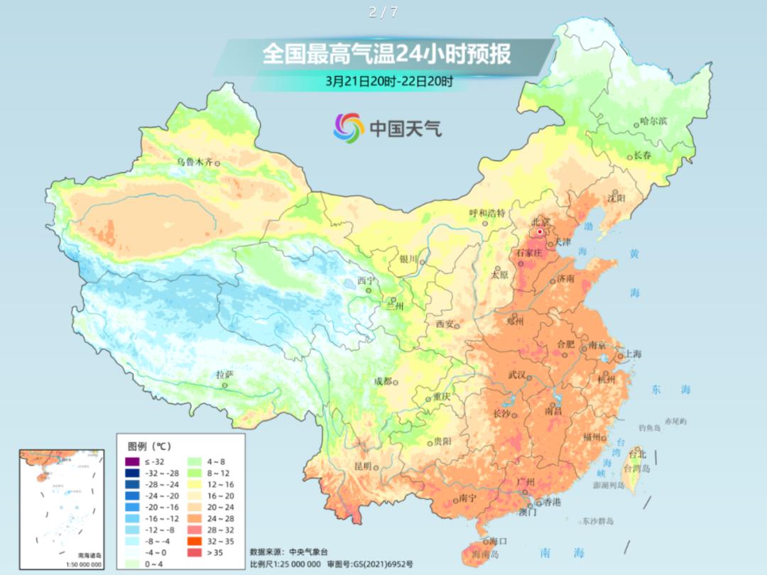 21日至25日,气温持续上升,25日全区最高气温上升至20日。~最低温度在25℃升至3~7℃。
