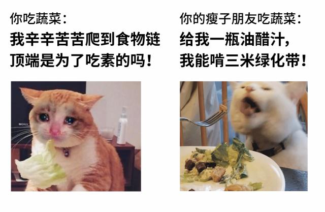 例如有些瘦子朋友,动不动就没胃口,吃对了。 Ta 对人来说堪比上刑,只是为了维持生存而不得已。