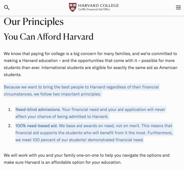 但是,哈佛作为促进教育公平的先行者,也有针对国际学生的Need-Blind(不包括经济需求)录取政策。