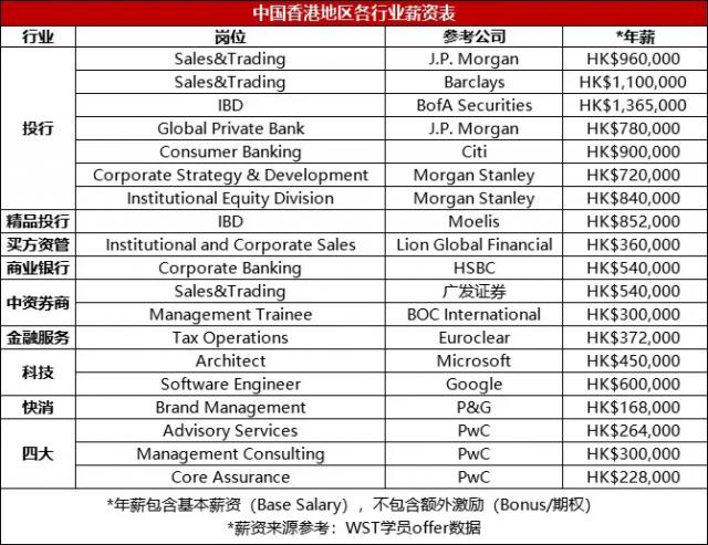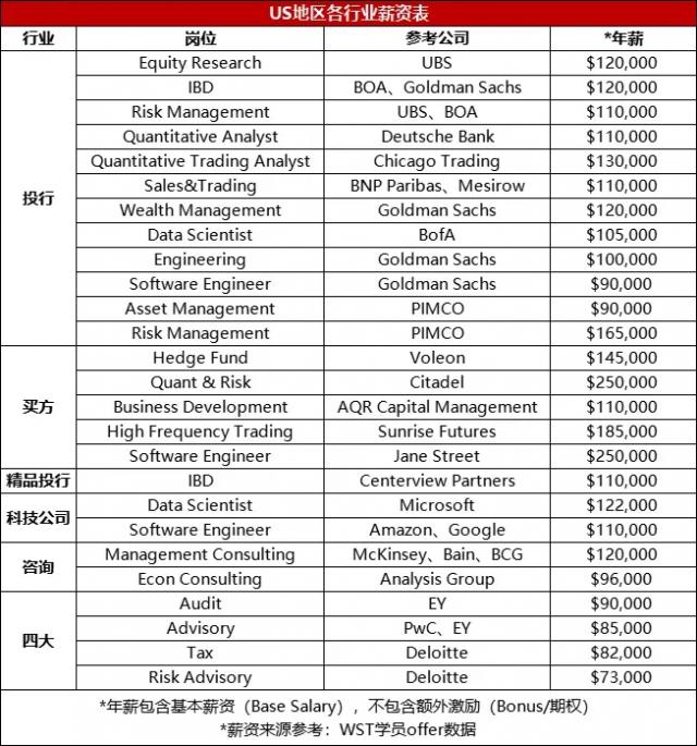 首先谈谈所谓的高薪,WST 根据学员 offer 整理出来的数据在美国,中国香港,英国三个地区的一些行业,实际工资水平不同供大家参考� �