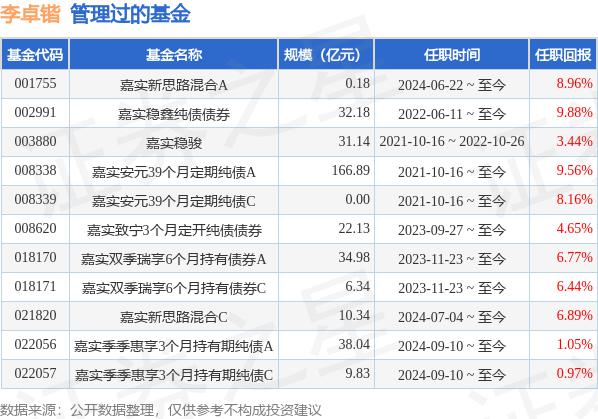 中国国藉、研究生李卓邈先生。曾在国家开发银行资金局工作,从事债券投资工作。具有基金从业资格。2017 年 12 每月加入嘉实基金管理有限公司担任战略投资经理,现任战略投资总监。2021 年 10 月 16 日至 2022 年 10 月 26 日任嘉实稳骏纯债券型证券投资基金经理。2021 年 10 月 16 到目前为止,任嘉实安元 39 纯债券型证券投资基金基金经理定期开放,2022年 年 6 月 11 到目前为止,嘉实稳鑫纯债券型证券投资基金经理、2023年 年 9 月 27 到目前为止,任嘉实致宁 3 纯债券型证券投资基金基金经理定期开放,2023年 年 11 月 23 到目前为止,任嘉实双季瑞享受 6 个月持有期债券型证券投资基金经理,2024年 年 6 月 22 截至目前,任嘉实新思路灵活配置混合型证券投资基金经理。2025 年 1 月 10 日本担任嘉实稳福混合型证券投资基金经理。