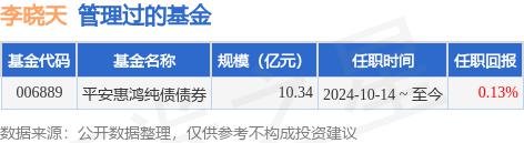 李晓天先生:中国国通,美国康涅狄格大学金融风险管理硕士,曾任安信证券有限公司信用研究员、安信证券资产管理有限公司信用研究员。2021 年 9 每月加入平安基金管理有限公司,曾担任固定收益投资中心研究人员、高级研究人员、投资经理。目前担任安全惠鸿纯债券型证券投资基金、平安惠旭纯债券型证券投资基金、平安合泰泰 3 每月定期开放债券型发起式证券基金,安全高级债券型证券投资基金,安全合庆 1 年度定期开放债券型发起型证券基金、安全惠文纯债券型证券投资基金、安全惠融纯债券型证券投资基金、安全惠兴纯债券型证券投资基金、安全合丰定期开放纯债券型发起型证券基金、安全惠隆纯债券型证券投资基金、安全稳健增长混合型证券投资基金、安全合汇定期开放纯债券型发起型证券基金、安全合瑞定期开放债券型发起型证券基金经理。2025 年 03 月 14 日起担任平安惠韵纯债券型证券投资基金基金经理。