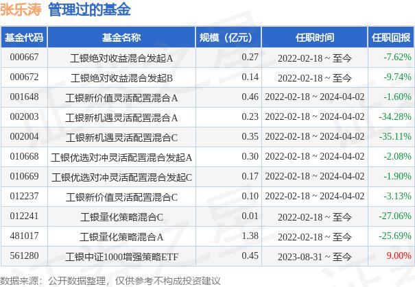 张乐涛先生:2018年中国国家贷款研究生 2008年加入工银瑞信,现任指数投资中心积极量化投资团队成员。2022 年 2 月 18 日起担任工银瑞信基本面量化战略混合型证券投资基金、工银瑞信绝对收益战略混合型发起型证券基金。曾任工银瑞士瑞信银行新价值灵活配置混合证券投资基金、工银瑞士瑞信银行优化对冲策略灵活配置混合发起证券基金经理、工银瑞士瑞信银行新机遇灵活配置混合证券投资基金主管。曾经是工银瑞信中证 1000 加强战略交易型开放式指数证券基金经理。2025 年 2 月 7 日起担任工银瑞士瑞信银行中证国新央企现代能源交易开放指数证券投资基金、工银瑞士瑞信银行中证媒体指数证券投资基金 ( LOF ) 基金主管。
