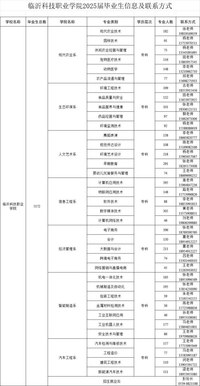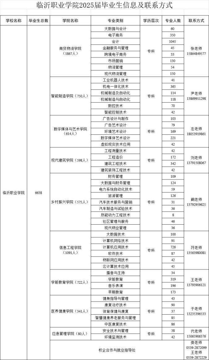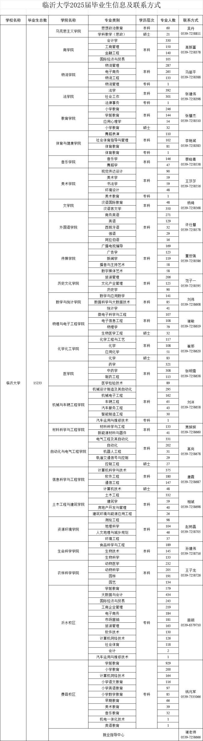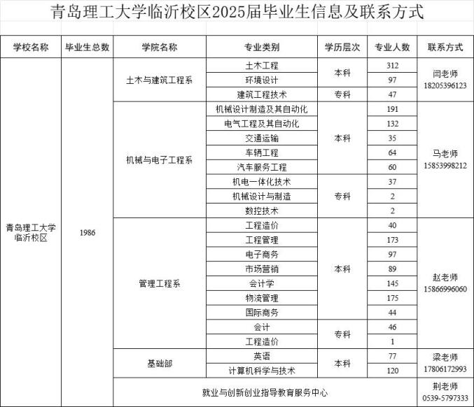 2025届青岛理工大学临沂校区毕业生信息及联系方式