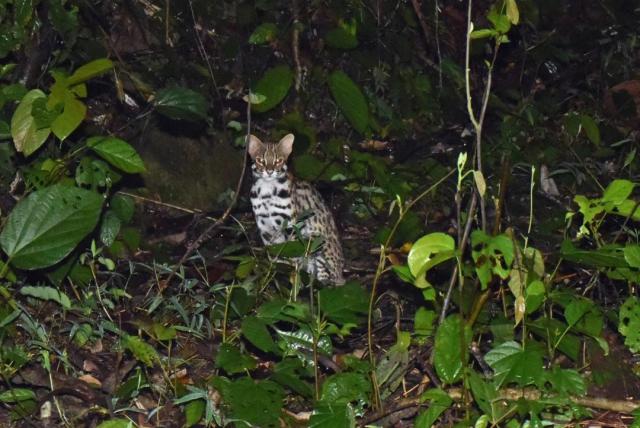 豹猫的眼睛反射着夜晚温柔的光芒。