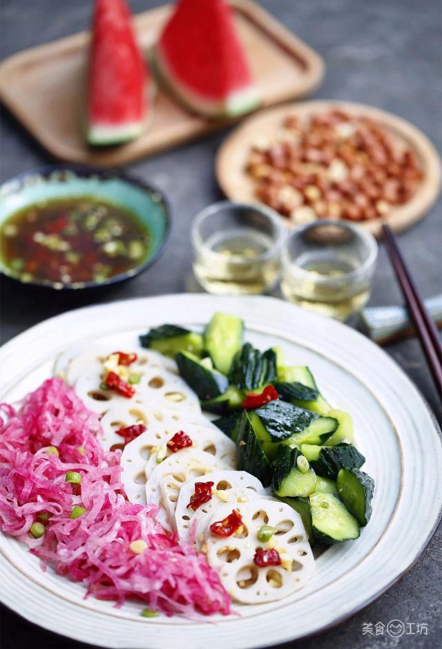 粉心美萝卜,白藕片,绿黄瓜,光看一眼就已心花路放,吃起来更脆清新,酸爽解腻!