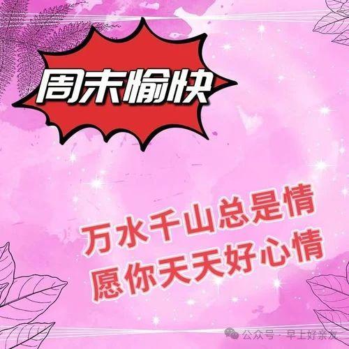 迎接每天的乐趣,坚持永久的健康。每天打招呼当聚会,生活自然有味道。年轻第一,健康快乐。接受相互祝福,分享美好时光。周末快乐,花开灿烂,依靠阳光,生活幸福依靠健康;友谊长期依赖联系,真诚问候健康。愿我们都平安吉祥!