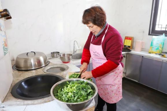 等菜饭的时候,朱阿姨也没闲着,处理早上采摘的马兰头。将马兰头焯水凉拌,淋上几滴香油,是春天最清晰的开始。