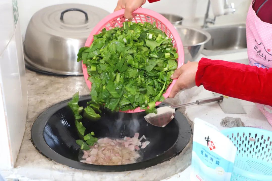 菜心、马兰头、草头...春菜争先恐后地出现,此时的收获也是新鲜的。最近,张堰镇旧港村的朱阿姨一直忙着围着这些春菜。一大早,她就在自己的菜地里掐着菜心,准备做一锅炉饭。朱阿姨说,金山炉饭的核心在于“因地制宜,及时食用”。