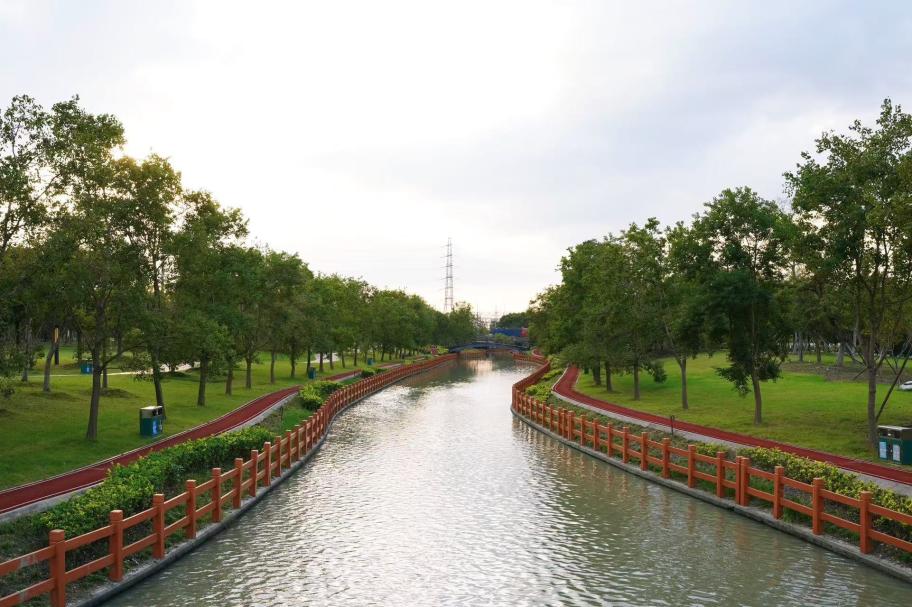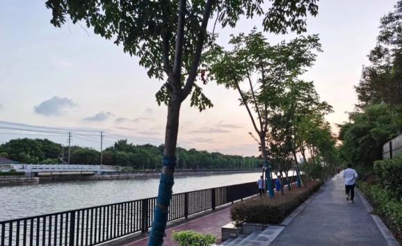淀浦河健身步道以水岸生态为背景,打造城市“天然氧吧”。这条沿河建造的彩色沥青跑道配备了健身器材,满足沪亭南路桥下多元化运动的需要。晨练者穿梭在垂柳绿茵之间,春天樱花如雪,河面波光粼粼,晨光灿烂。过去,工业堤岸变成了外环生态“翡翠”带,这里的开放空间变成了城市人逃离喧嚣,拥抱大自然的活力绿洲。