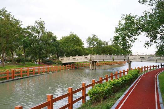 吴家邈绿地公园是九亭镇晨练者最喜欢的天然氧吧。市民的健身步道是根据水建造的,蜿蜒在吴家邈河两岸,连接溪流、古桥等景观,形成生态环保过道。晨练者可以沿着河流穿梭,步道两侧保留着搬迁修复吴家邈古桥、斑驳的石栏和晨光,是历史遗产与现代健康理念交融的活力空间。