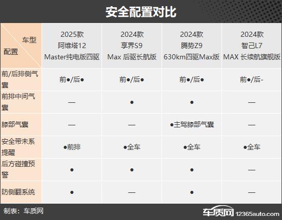 客观地说,对于这类市场定位较高的车型,主要是 / 被动式安全配置肯定没有槽点。相比之下,腾势 Z9 整体表现较为亮眼,不仅独享主驾膝气囊,还配有前排中间气囊和防侧翻系统。