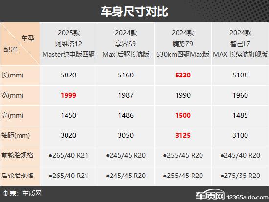 尺寸方面,腾势 Z9 确实有一定的优势,账号数据更好看。但是,毕竟四款车的定位在那里,不仅车身超过了 5 米饭,轴距也都达到了 3 大米以上,整体气场十分充足。客观地说,这类车型的潜在用户,大概率也不会太纠结于尺寸参数。