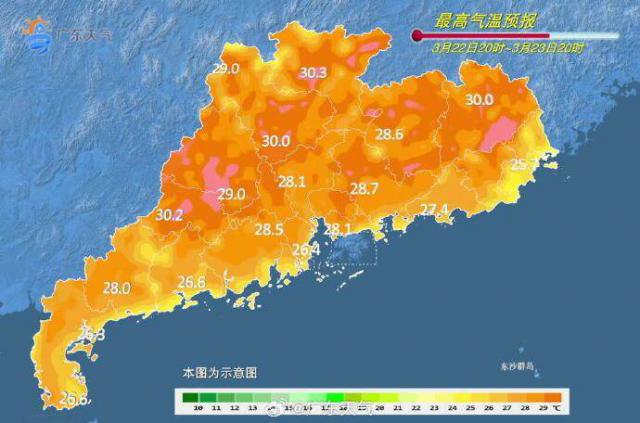 @23-25广东天气估计 日本,广东省大部分天气晴朗多云,天气干燥,气温持续上升,部分市县最高可达。 30 ℃以上。