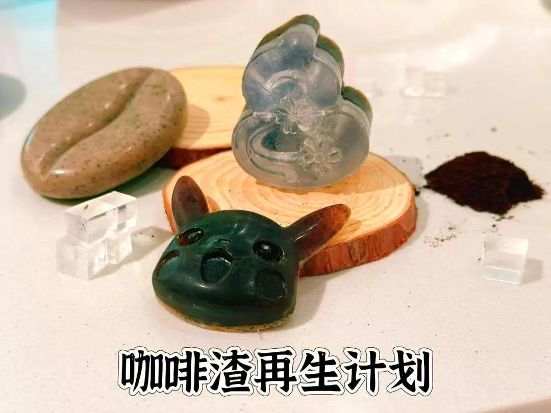 在现场,在专业导师的指导下,参与者巧妙地将咖啡渣与天然皂基融为一体,通过“皂基熔化-黄金比例-精油赋香-匠心塑形”四大工艺。精确混合的咖啡渣在模具中绽放出新的姿态,既保留了咖啡的自然去角质效果,又增加了吸附油脂的实用特性,凝结成具有淡淡烘焙香气的艺术皂体。这个连续三个小时的环保试验,将咖啡渣转化为2.4。KG,相当于制作160杯咖啡留下的量。