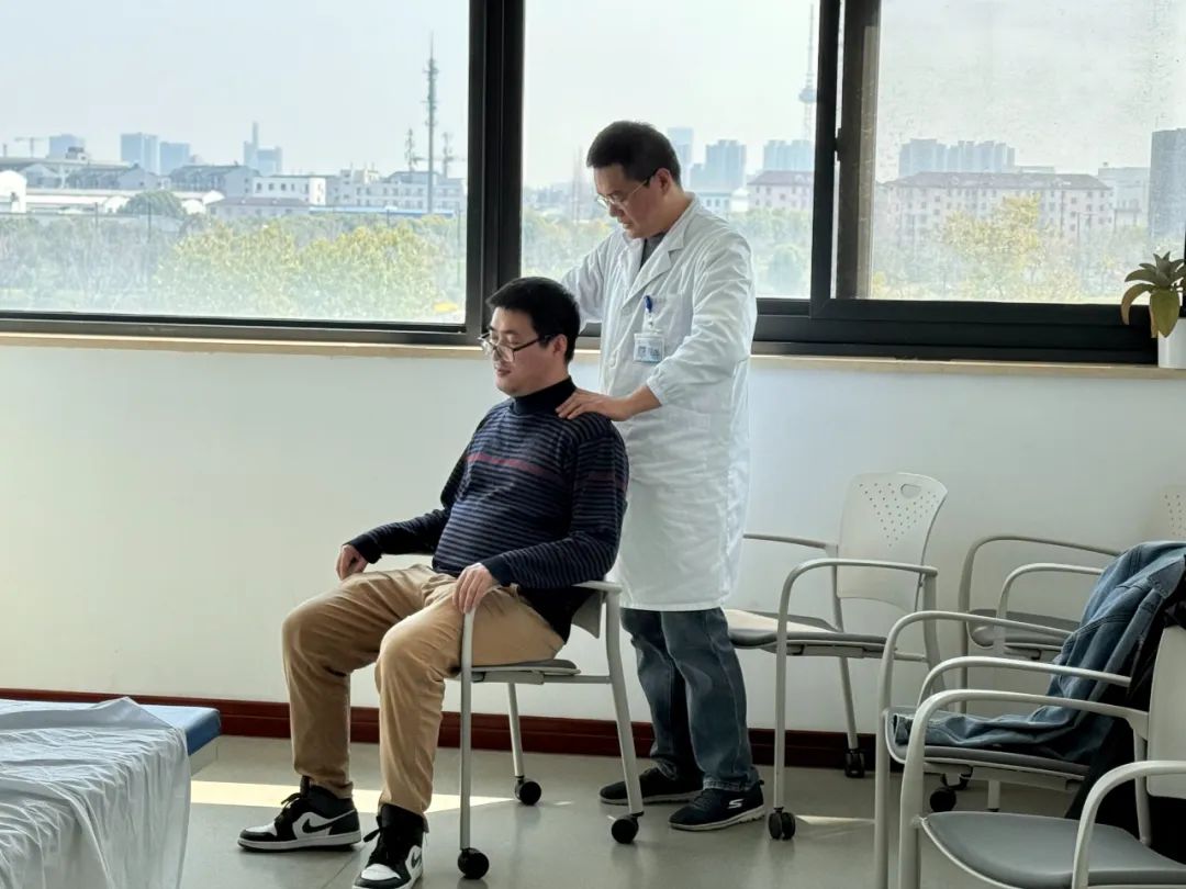 另一方面,整骨体验馆前排起了长队。按摩科和骨科的医生通过精湛的整骨按摩技术,帮助员工放松筋骨,缓解颈肩腰腿的不适。员工贾颖楠说:“经历过之后,真的减轻了很多。我们这里的大部分员工和学生都在办公桌前工作,方便实用。”