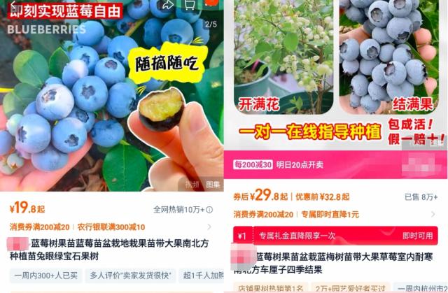 在电商平台上,今年春天,许多盆栽蓝莓商家迎来了爆单。