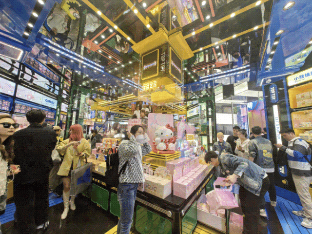 整个旗舰店有80多个IP,比如盲盒、萌粒、毛绒、积木。每个喜欢玩潮的人都可以在TOP里。 TOY找到了他想要的东西。