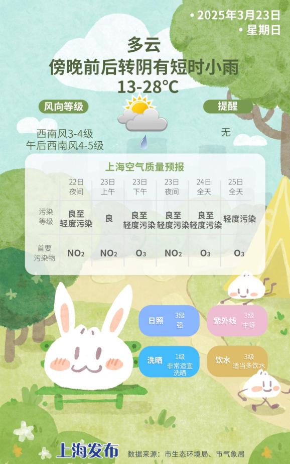 这场雨是一个“插曲”,主要出现在晚上到晚上,不影响温度升高,全天温度在13-28℃之间。西南风3-4级,中午起4-5级。相对湿度为80%-20%,白天体验整体温暖,中午微热。建议使用洋葱服装。