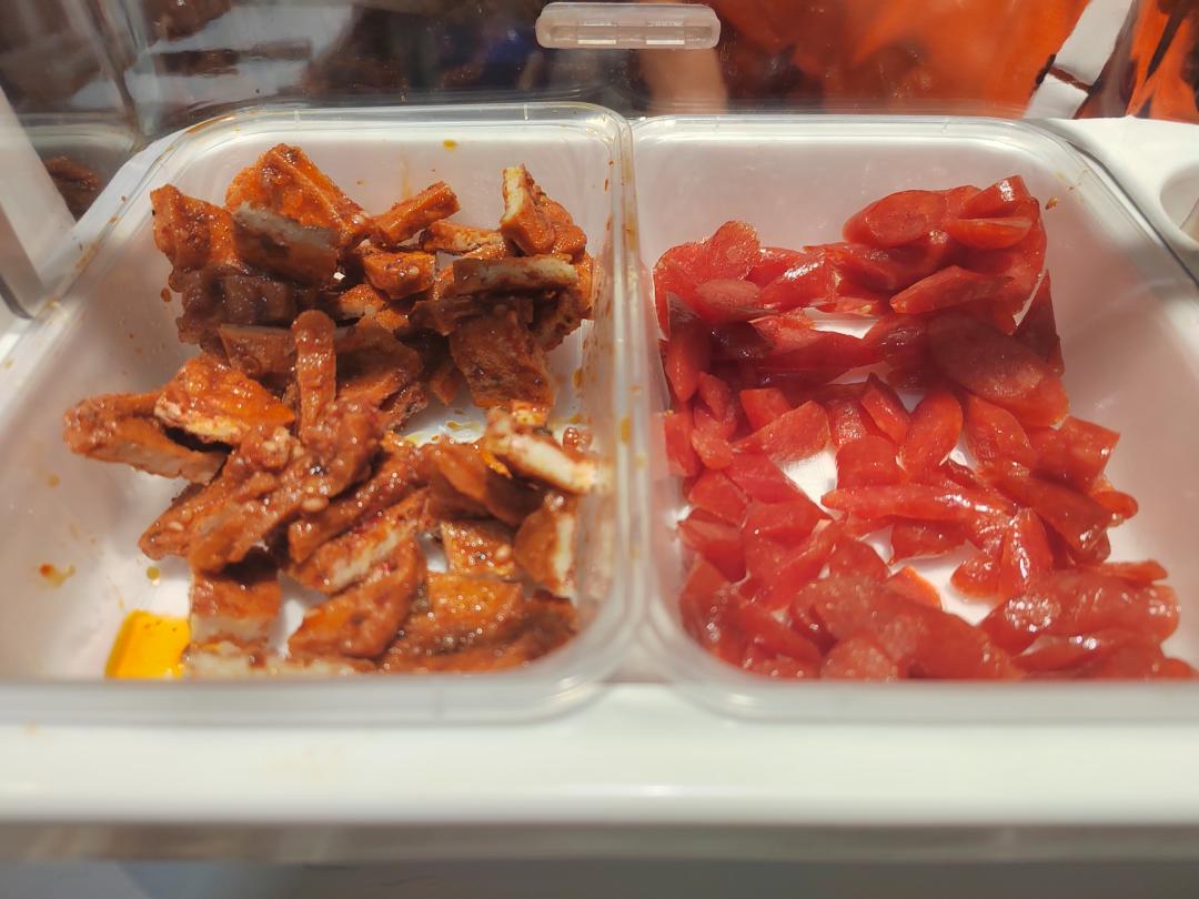 此外,胖物美还增加了大量熟食和现制热食柜台,和盒马等生鲜超市相比,胖物美的海鲜制品更少,猪肉饼等平价食物更多。