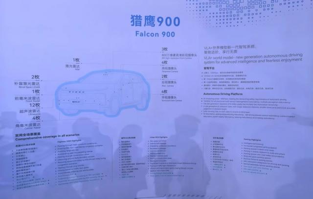 我们还可以在新闻发布会上看到猎鹰。 700 的 11V3R1L12U-12V5R1L12U 就是配了一只猎鹰 900 的 13V5R3L12U 配了 3 颗粒。显然,就是通过激光雷达、毫米波雷达、摄像机、超声波雷达四种传感器相互融合来解决问题。
