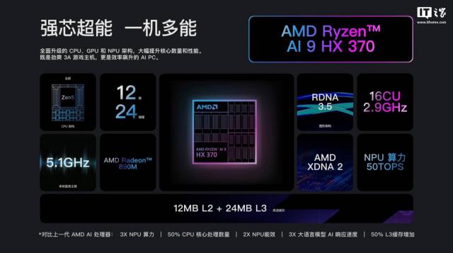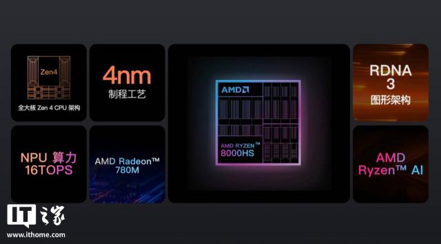 该机可选 12 核心 24 进程 AI 9 HX 370 Cpu,还将提供 AMD 锐龙 8000HS 配备Cpu系列 DDR5 RAM 和 M.2 2280 PCIe 4.0 SSD,配有双散热风扇系统。