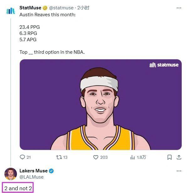 Lakers Muse 评论:“前两个,但不是第二个。”换言之,如果里夫斯是第二个,那么没有人敢说是第一个!