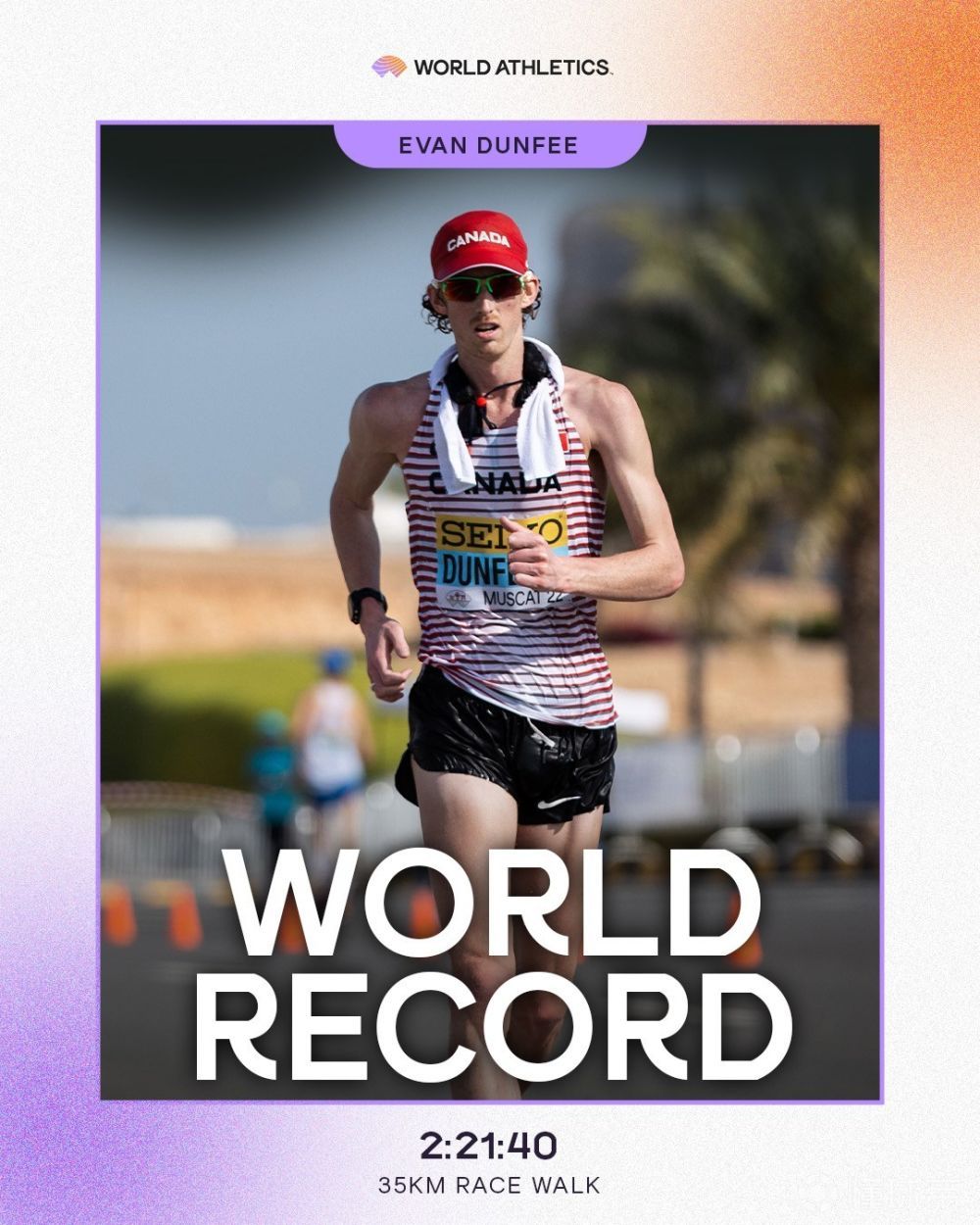 邓菲,加拿大选手,刷新男子35公里的世界纪录。
