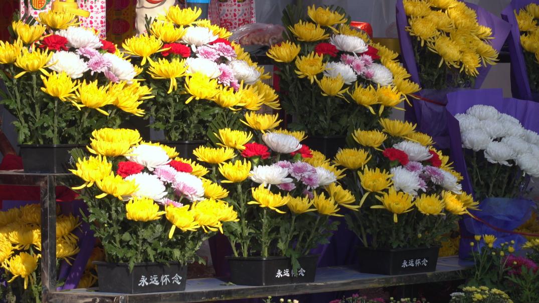 商人周家勇说:“鲜花祭祀更加环保和安全,我们提前准备了许多祭拜用的鲜花,供顾客随意挑选。
