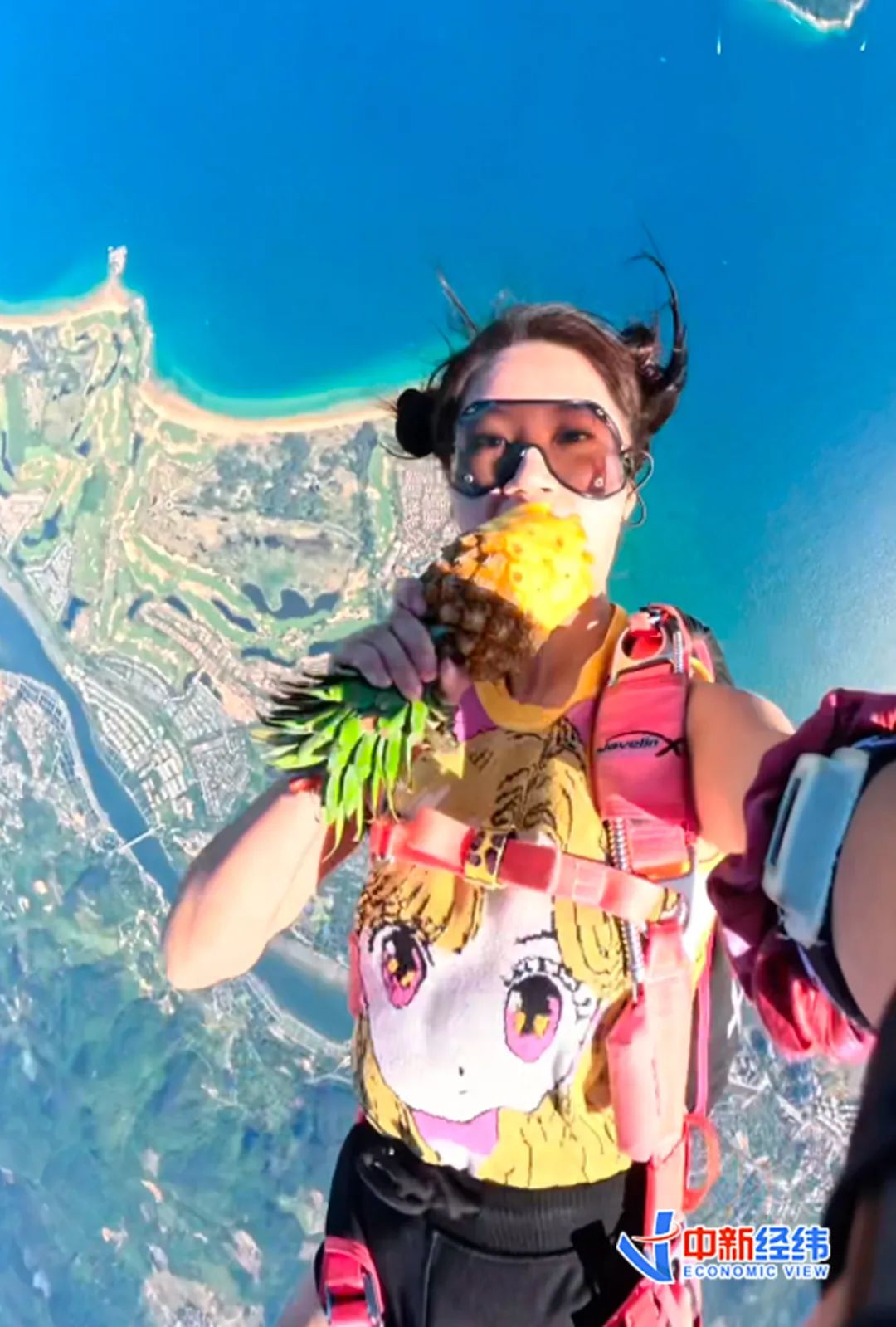 雪梨告诉中新经纬:“不会咽下去,跳伞时失重感其实并不强,风会托着你。