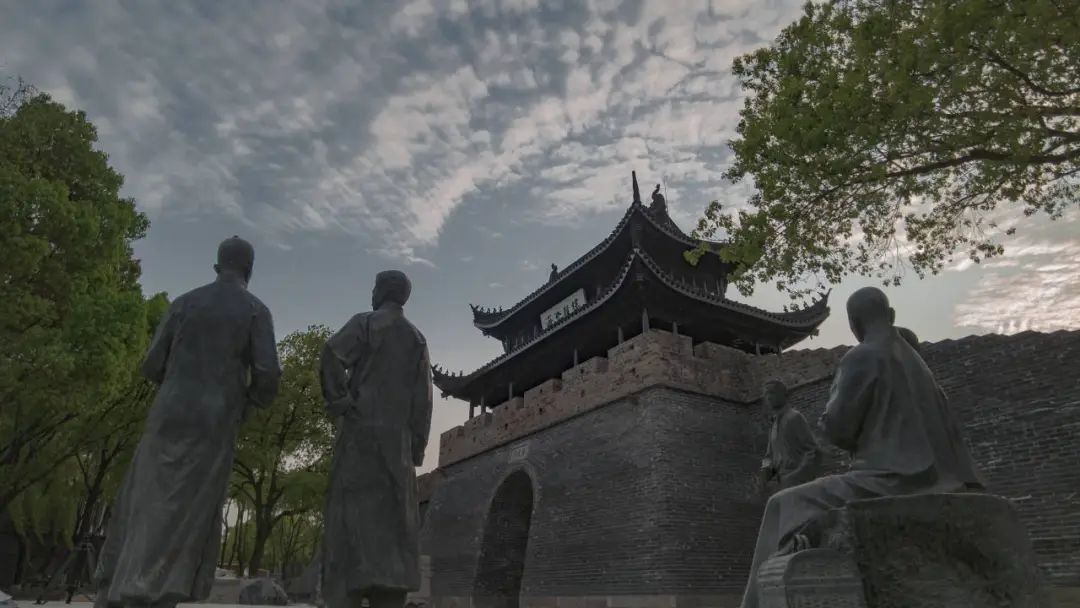 春波门是民国前从嘉兴东门乘船到南湖的公共渡口。起初,中国共产党第一大学的祖先来到这里,从那以后,他们登船前往湖心岛。春天充满了微波,雕塑群定格了历史的永恒时刻。
