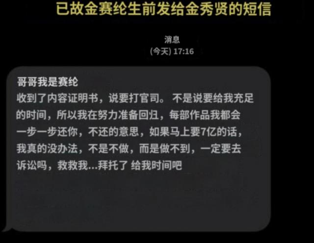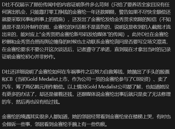 4、金赛纶生前给金秀贤发的最后一条信息是,她恳求她不要催促她偿还债务。当她失去工作机会时,她正在积极准备回来,然后按比例偿还收入,但她希望得到整合。显然,这种语气不仅仅是通知,而是压力。