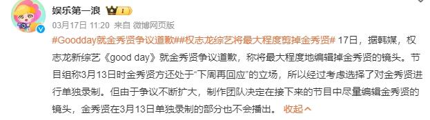 由于金秀贤个人情绪不稳定,长文提前向外界发表,因此对外表示。