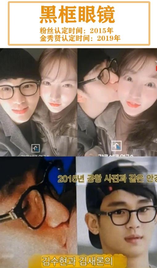 在合影中,金秀贤戴的黑边眼镜是 2015 年度粉丝赠送,其造型和造型 2015 年底的造型撞款。