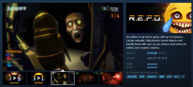 《R.E.P.O.》这是一个最大的支持 6 著名玩家的在线合作恐怖游戏。根据你的创造者的要求,找到一个完全基于物理的有价值的物体,并仔细处理它们以提取和运输。
