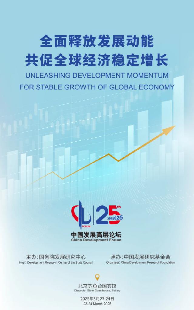 中国发展高层论坛 2025 年年会于 3 月 23 日至 24 以“全面释放发展动能,共促进全球经济稳定增长”为主题的北京日在北京举行。