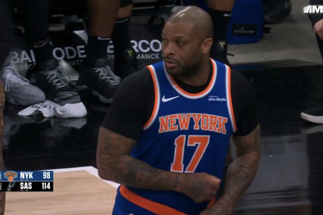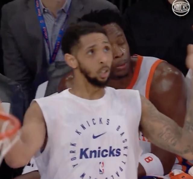 在尼克斯的凳子尾端,塔克今天也坐在比赛结束。