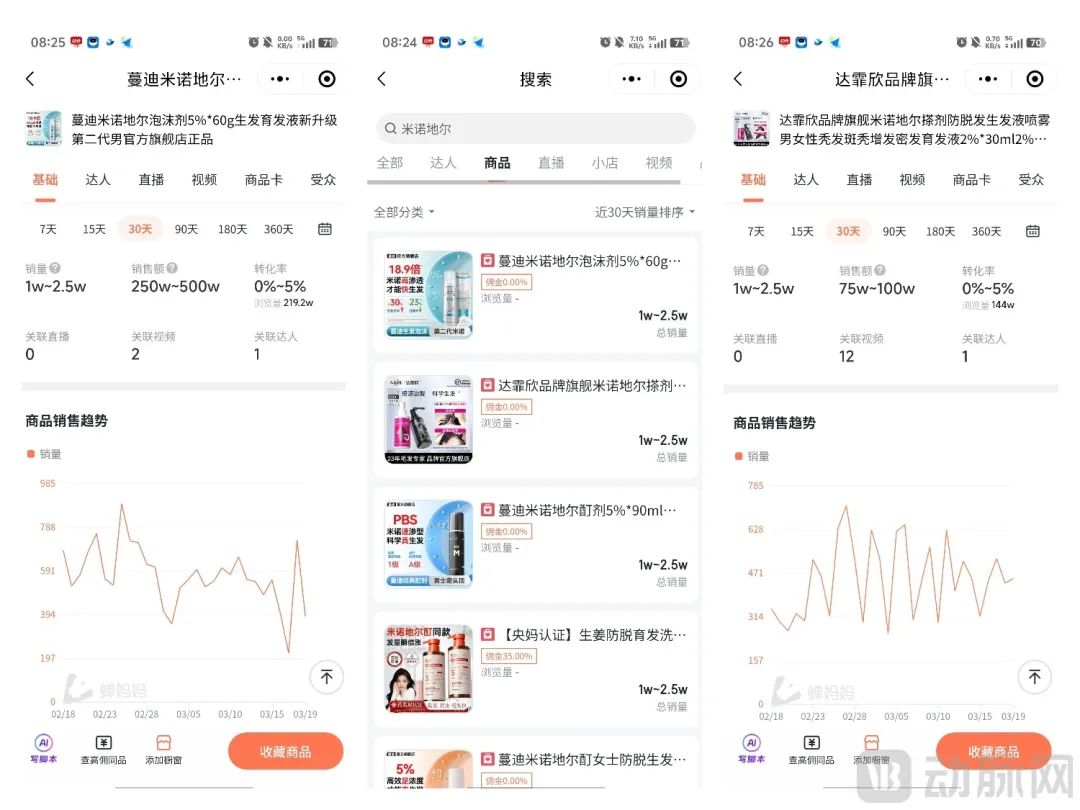 在抖音销售的米诺地尔商品,图源蝉妈妈