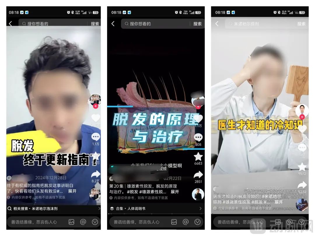 KOL对脱发的治疗进行科普,图源抖音截屏