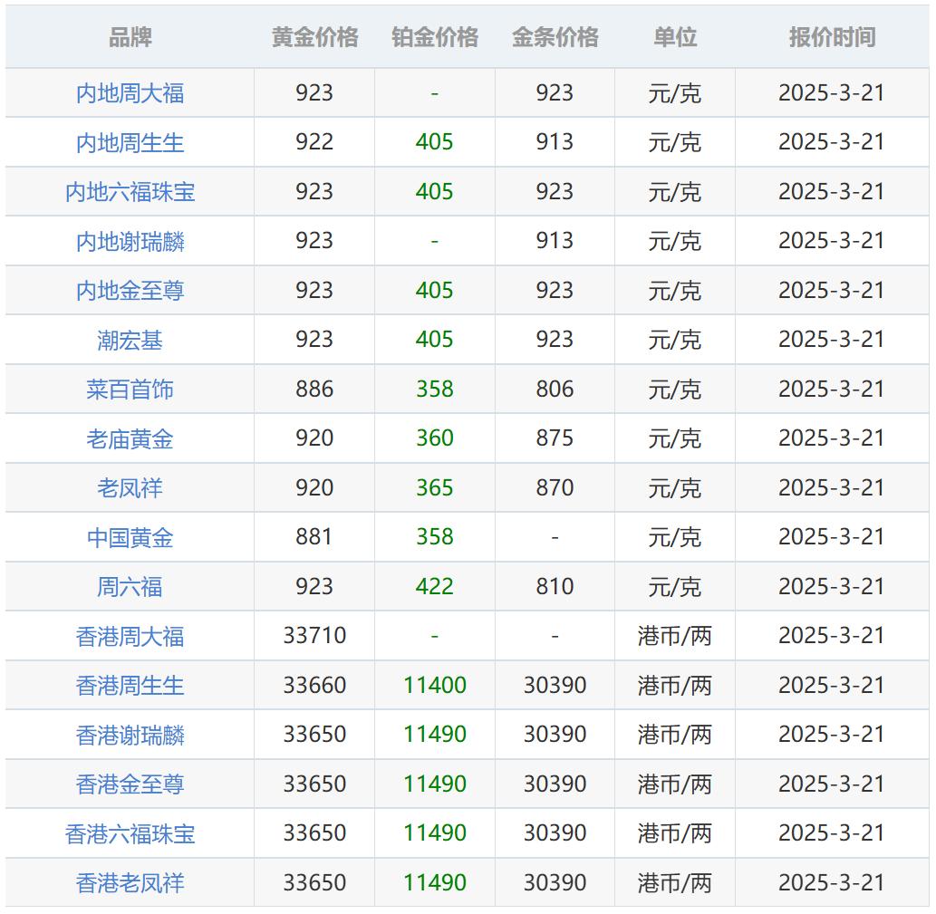 三月二十日现货黄金价格