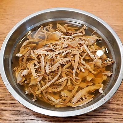 1、提前几个小时用冷水浸泡笋干,抓洗几次,去除杂质。